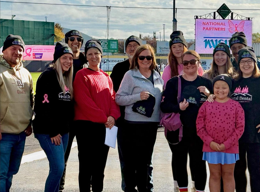 Making Strides Against Breast Cancer is the American Cancer Society's premier event to raise awareness and funds to fight breast cancer. But it’s more than just the name of a walk – it describes the amazing progress we’re making together to defeat this disease. s. In 2007 alone, nearly 500,000 walkers across the country collected more than $50 million to help fight breast cancer. Vestal Dental is proud to support this annual event.